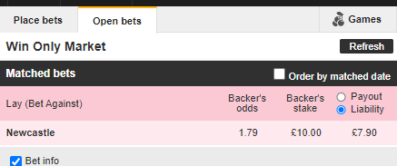 Finally, on Matchbook again on the right-hand side you can see your matched bets under the Matched tab: