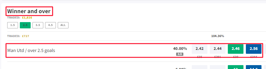 If you picked Man Utd to win and Over 2.5 goals, or any other over/under goals market, you can lay it using the Winner and over market.